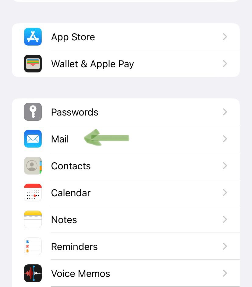 2. Scroll down and select the Mail Button